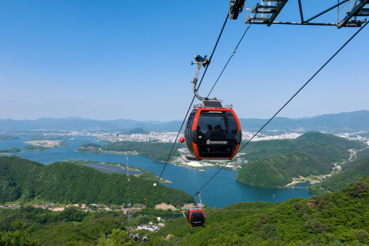搭乘全韓最長湖上纜車 - 三岳山湖水纜車,從高空鳥瞰三岳山湖光山色